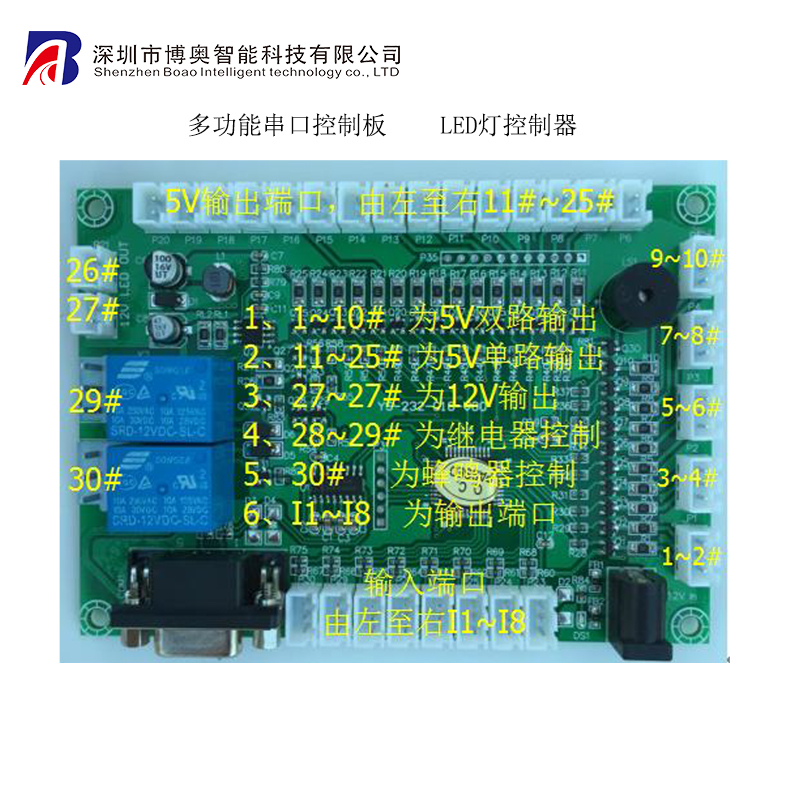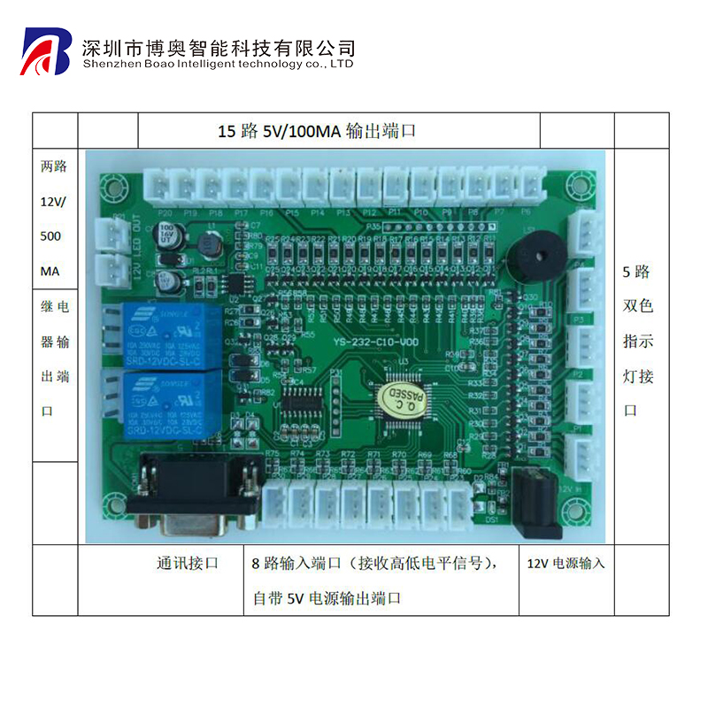 終端專用IO控制板 串口通訊模塊  RS232控制器 LED燈控制板 - 自助終端機(jī)|智能訪客機(jī)|軟件開(kāi)發(fā)|電子硬件PCBA控制板開(kāi)發(fā)|深圳市博奧智能科技有限公司 - 自助終端機(jī)|智能訪客機(jī)|軟件開(kāi)發(fā)|電子硬件PCBA控制板開(kāi)發(fā)|深圳市博奧智能科技有限公司
