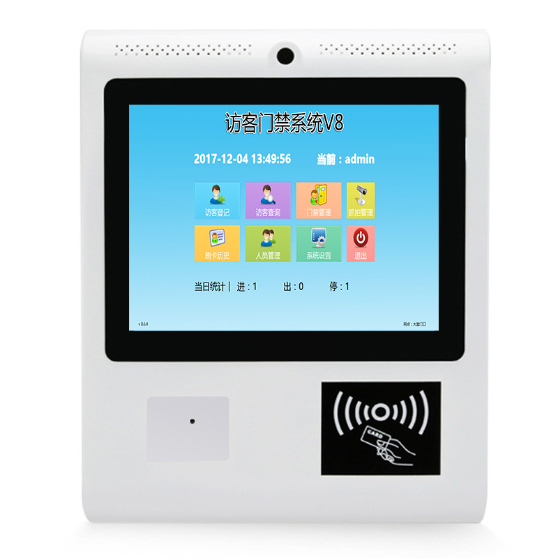 ? ? ? ? ?15寸壁掛式小區(qū)學(xué)校大廳門衛(wèi)登記設(shè)備人臉識(shí)別訪客門禁管理系統(tǒng)一體機(jī)
