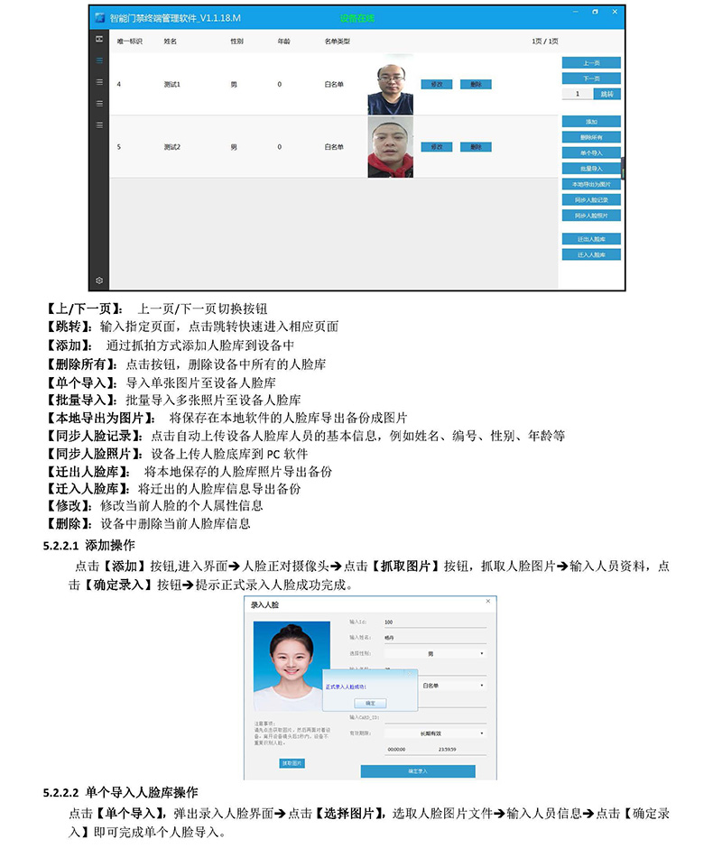 【人臉管理】:點擊進入人臉庫管理界面,可對人臉庫執(zhí)行加、減、刪、查、改等操作。
