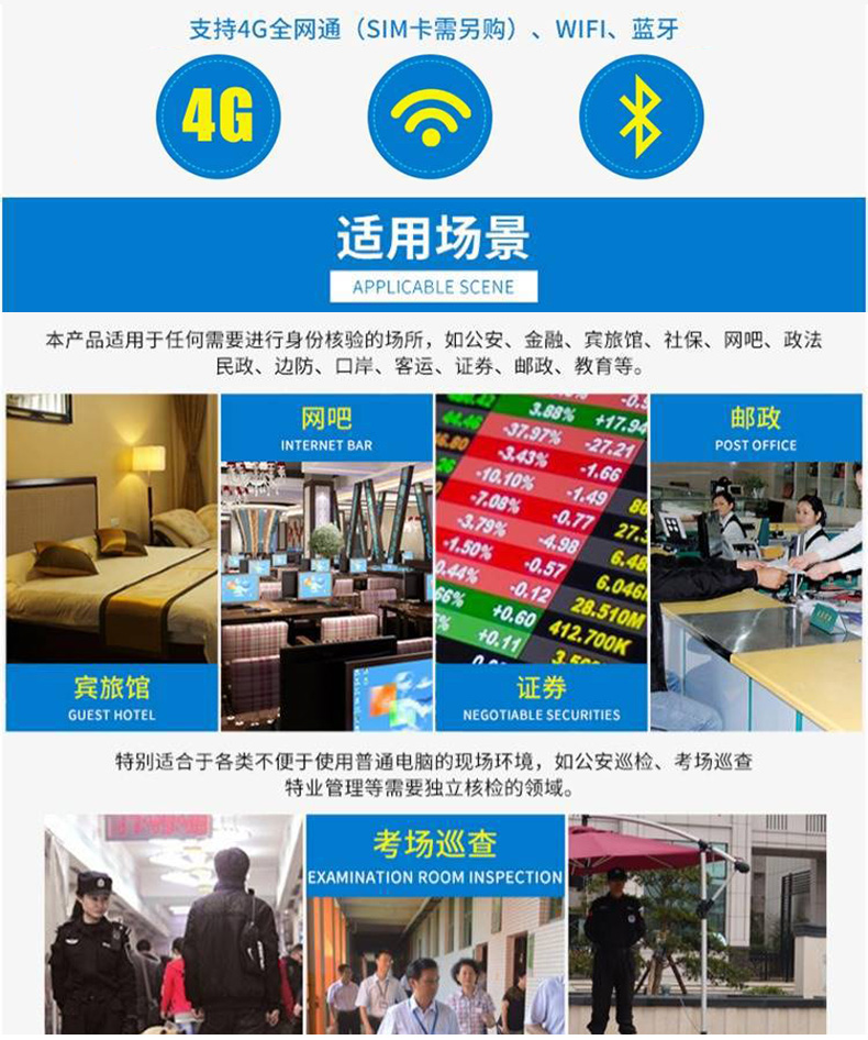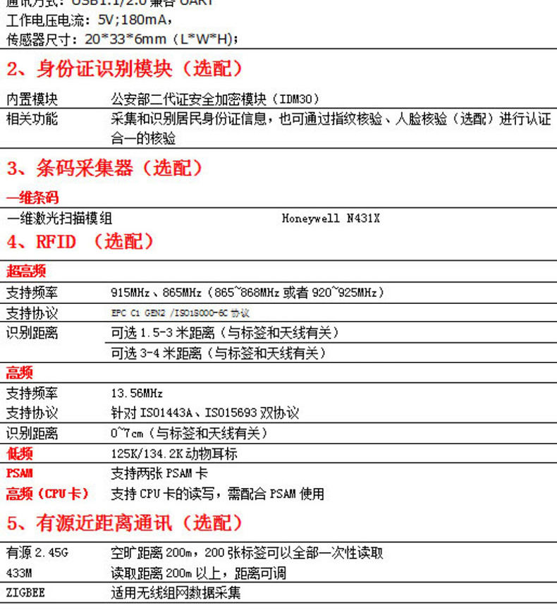 產(chǎn)品功能:身份證閱讀 人臉識別 指紋識別 條碼掃描 IC卡寫