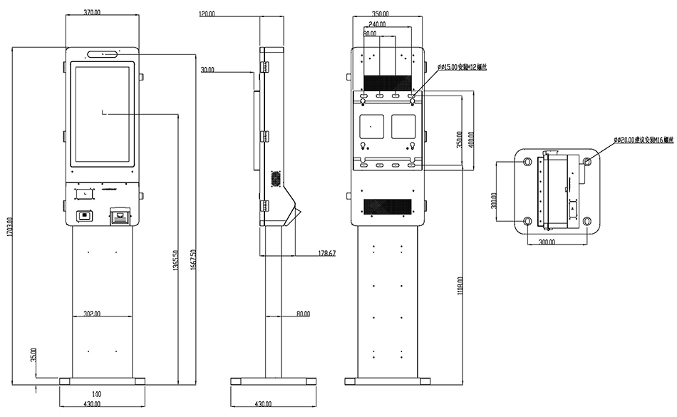 4.3內(nèi)部結(jié)構(gòu)按要求設(shè)計(jì)進(jìn)行加強(qiáng)筋加固,整機(jī)結(jié)構(gòu)牢固性可抗12級臺風(fēng),機(jī)器材質(zhì)采用冷軋板,噴漆工藝采用雙層噴戶外粉,外觀采用新穎設(shè)計(jì),可定制外觀,機(jī)器固定采用壁掛和落地式二用安裝方式,分別采取前開門和后開門進(jìn)行維護(hù)設(shè)計(jì)。