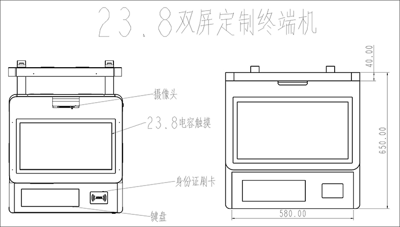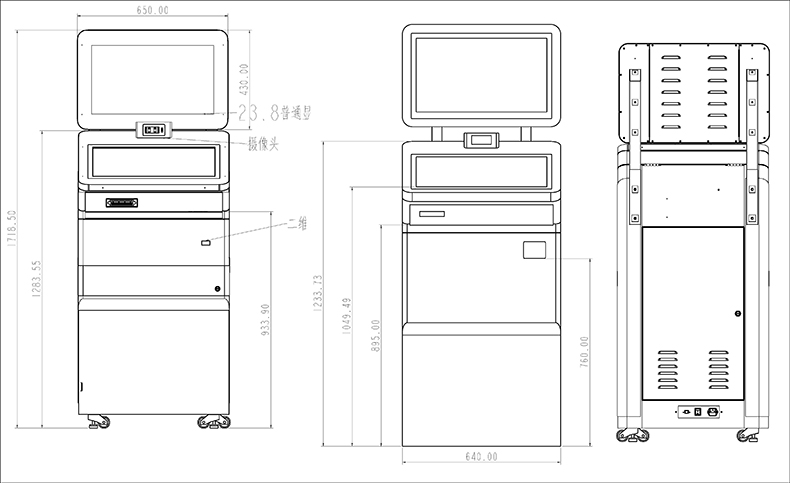 23.8寸自助終端機(jī)美觀大方,外殼采用鈑金烤漆工藝,集成雙屏23.8寸高清液晶屏,可上下調(diào)節(jié)雙目攝像頭,發(fā)卡模塊,身份證閱讀器,鍵盤等模塊,可配合系統(tǒng)集成軟件開發(fā)商廣泛用于多種場所,同時(shí)為客戶提供功能外觀結(jié)構(gòu)定制設(shè)計(jì)服務(wù)。