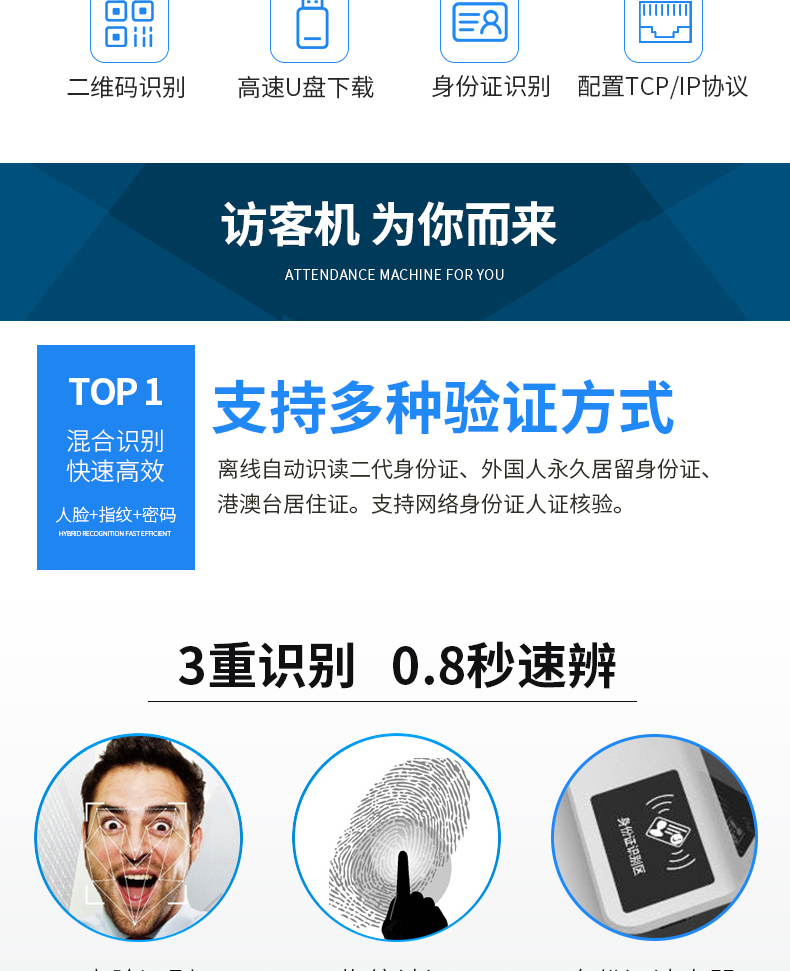 單屏智能訪客機(jī)系列產(chǎn)品,搭配13.3寸雙面LCD顯示屏幕(可選10.1寸),內(nèi)嵌深度學(xué)習(xí)人臉識別算法。內(nèi)嵌身份證解密模塊和指紋模塊。該產(chǎn)品具備人臉檢測、人證比對、活體判斷等強(qiáng)大功能??捎行椭脩艄芾碓L客出入人員權(quán)限,有助于防范疫情。所有數(shù)據(jù)既可脫機(jī)管理,也可以連上云平臺。也可搭配人臉面板機(jī)聯(lián)動,實(shí)現(xiàn)訪客出入無紙化。可廣泛應(yīng)用于小區(qū)門口、學(xué)校出入口、酒店入住,以及寫字樓等場景!