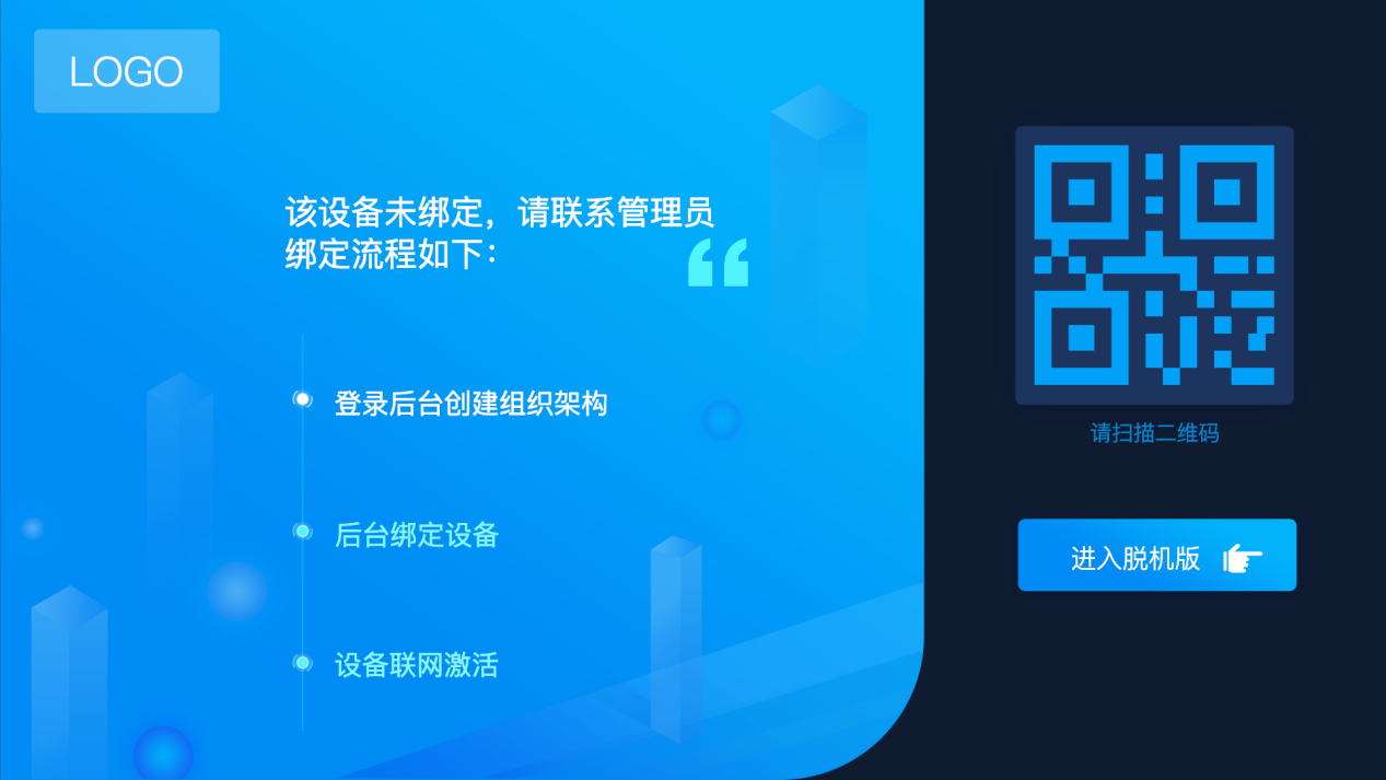 第一次使用時需聯(lián)網(wǎng)將設(shè)備綁定至后臺。設(shè)備方可使用