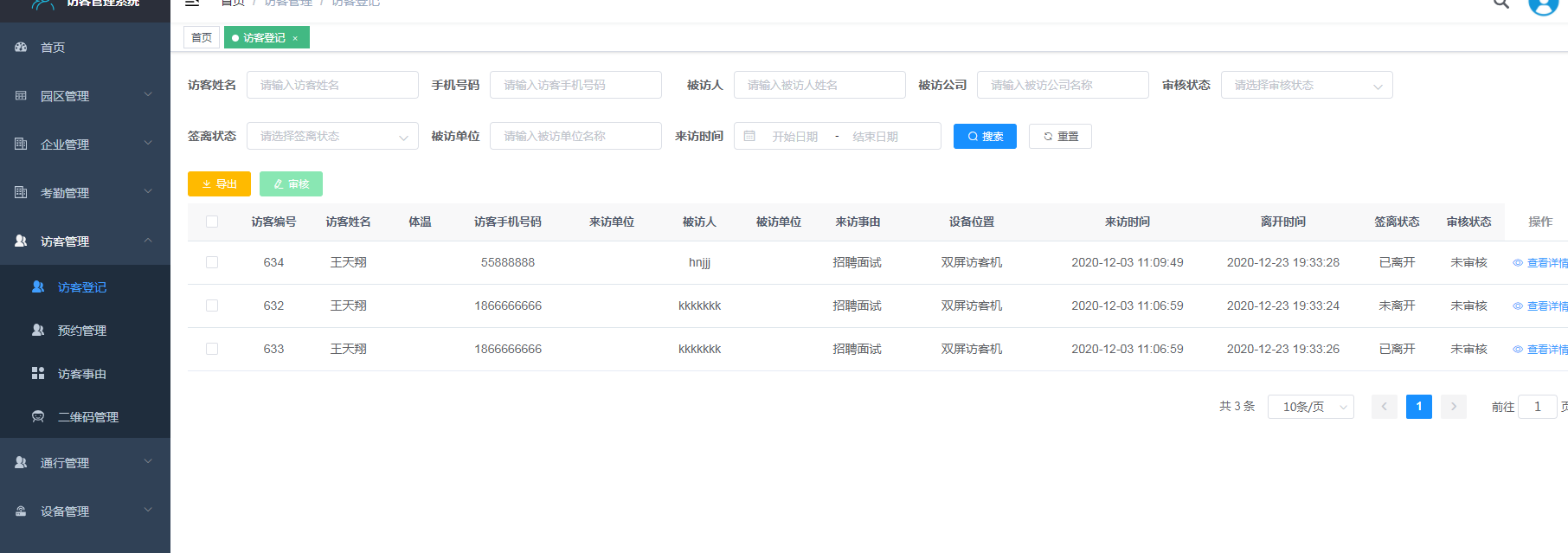 管理者亦可通過管理后臺實(shí)時查看訪客登記的所有記錄。