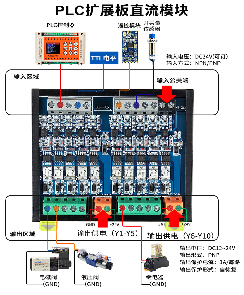 PLC4路擴展板直流模塊帶短路保護自恢復(fù)保險放大定制開發(fā)PCBA方案