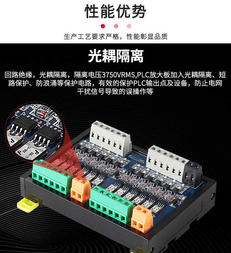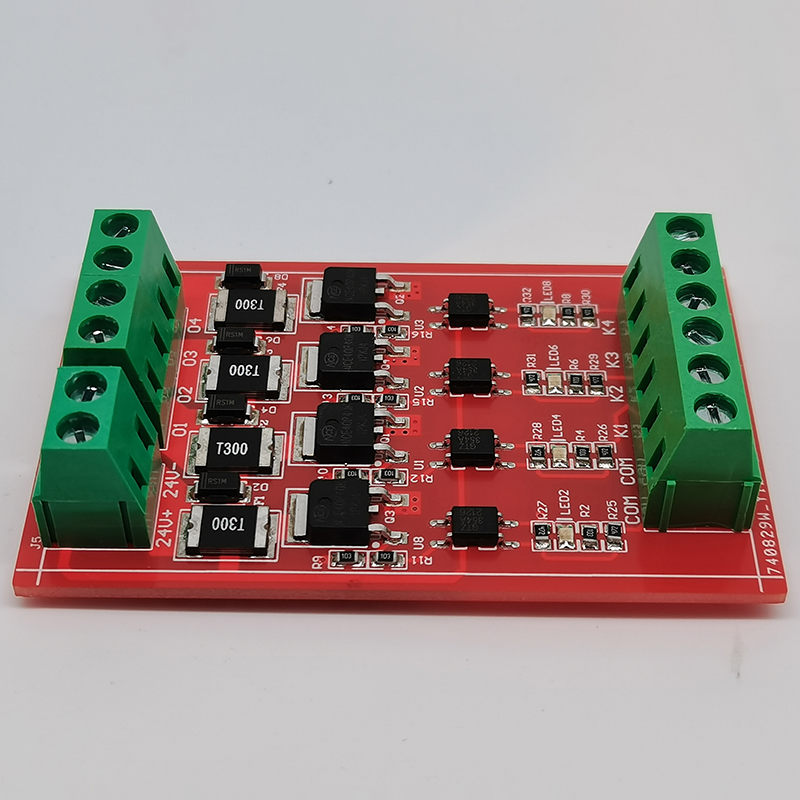 PLC擴展板直流模塊帶短路保護自恢復(fù)保險放大4路轉(zhuǎn)接板定制開發(fā)PCBA控制板方案