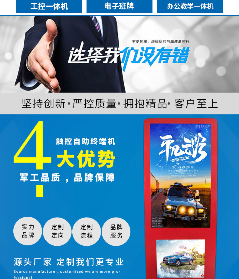 一站式解決方案供應(yīng)商,來(lái)圖來(lái)樣加工快速出樣品,提供相關(guān)硬件SDK協(xié)助開(kāi)發(fā);專注觸控產(chǎn)品的設(shè)計(jì)生產(chǎn),擁有十年設(shè)計(jì)經(jīng)驗(yàn)工程師、技術(shù)工程、生產(chǎn)管理人員,以高效品質(zhì)服務(wù)客戶;從供應(yīng)商的管理,配件的選型,工藝流程的管理各個(gè)環(huán)節(jié)都嚴(yán)格把關(guān),通過(guò)建立自己的產(chǎn)品質(zhì)量標(biāo)準(zhǔn)并嚴(yán)格執(zhí)行,確保產(chǎn)品質(zhì)量可靠;體驗(yàn)流暢。