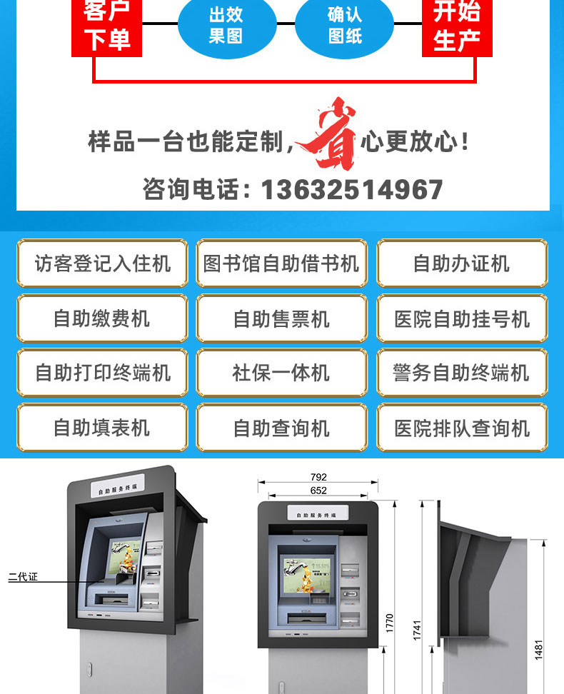 自助終端機定制:定制各種場景各種款式非標終端機;例如訪客機、景區(qū)自助取票機、醫(yī)院繳費查詢機、醫(yī)院自助取單機、社保查詢機、室內外廣告機、排隊叫號機、工控一體機、電力繳費查詢機、圖書自助銷售機、便攜式計算機、酒店自助入住機、自助收銀機等終端。