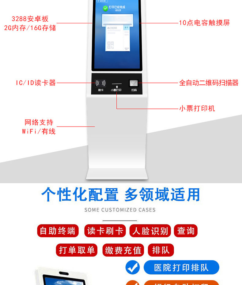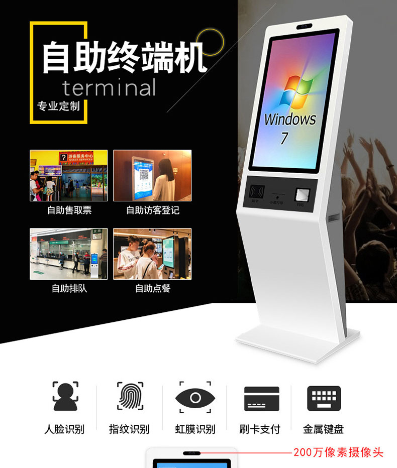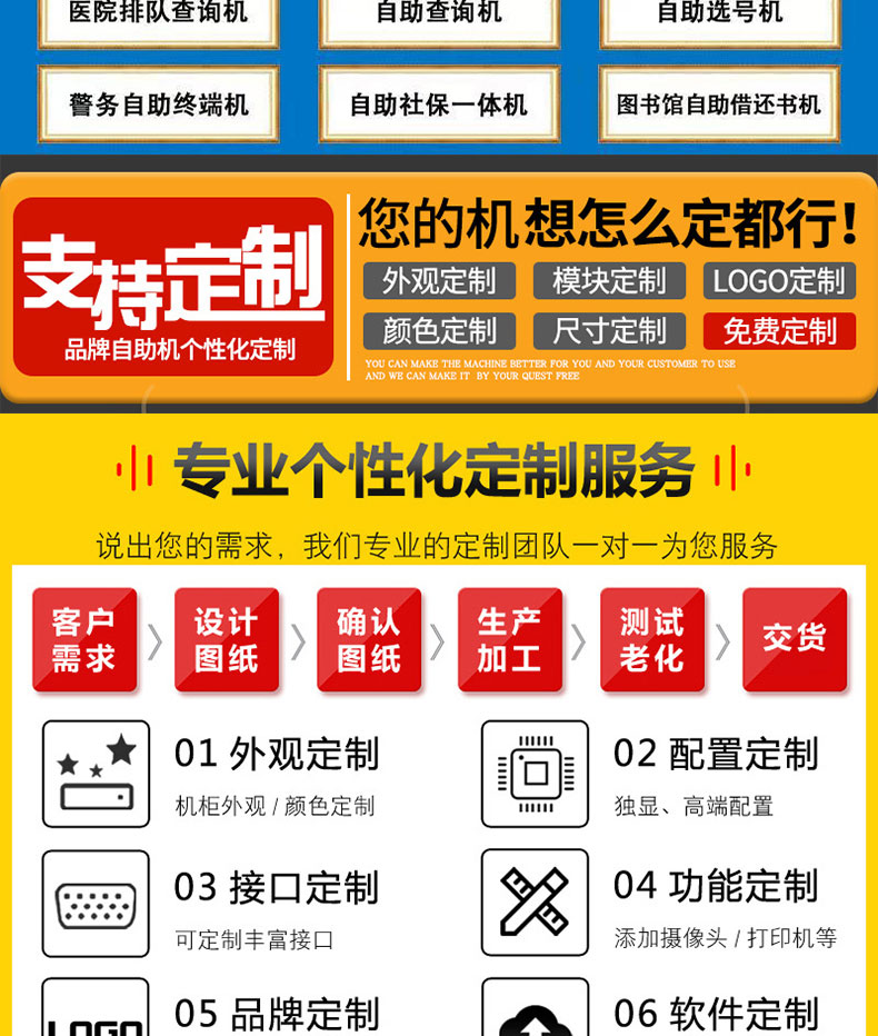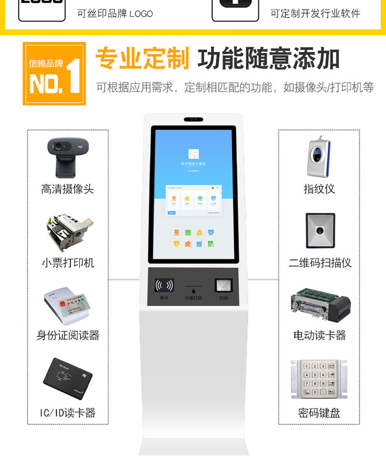 自助終端機定制:定制各種場景各種款式非標終端機;例如訪客機、景區(qū)自助取票機、醫(yī)院繳費查詢機、醫(yī)院自助取單機、社保查詢機、室內(nèi)外廣告機、排隊叫號機、工控一體機、電力繳費查詢機、圖書自助銷售機、便攜式計算機、酒店自助入住機、自助收銀機等終端。