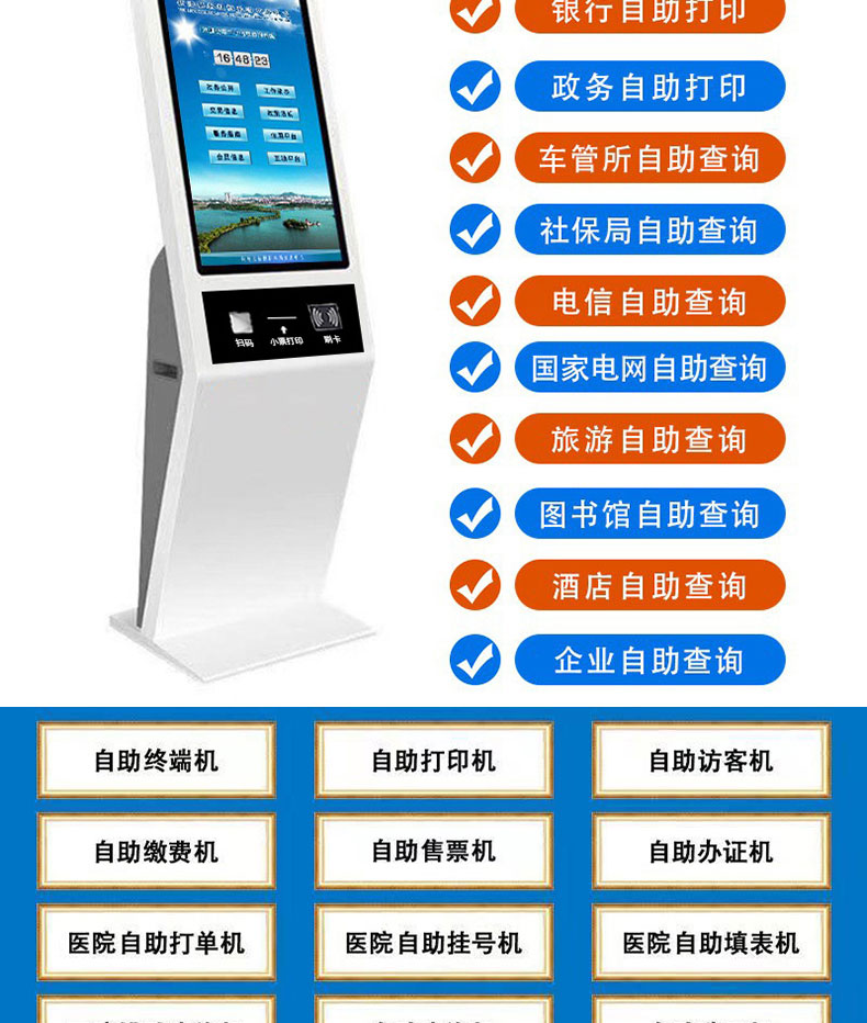 政務社保電信酒店取單繳費打印多功能智能自助終端一體機應用系統(tǒng)軟件定制開發(fā)