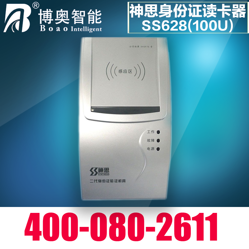 ? ? ? ? 神思SS628(100)身份證讀卡器,外觀精巧,兼容性強,安裝簡單,操作方便,廣泛適用于公安、銀行、保險、郵政、證券、酒店、電信等行業(yè)身份證信息的數(shù)據(jù)采集、錄入、核查比對。