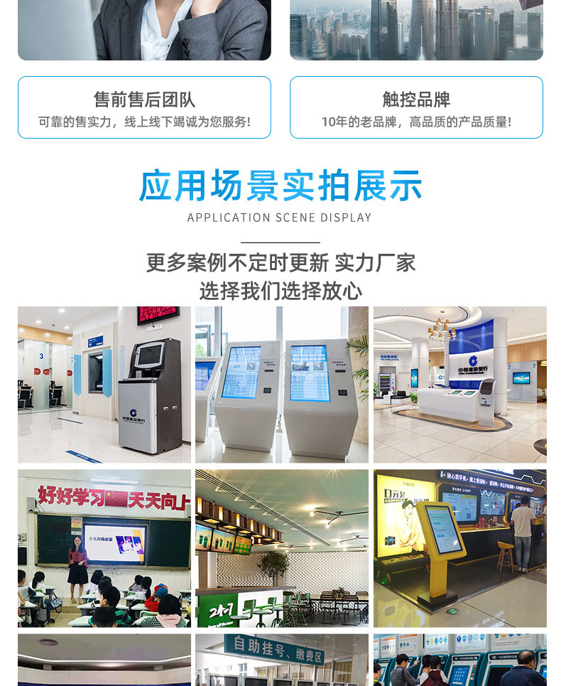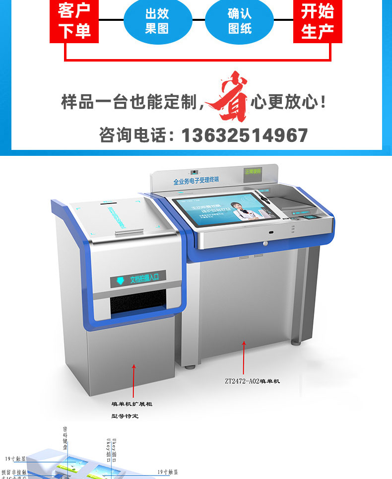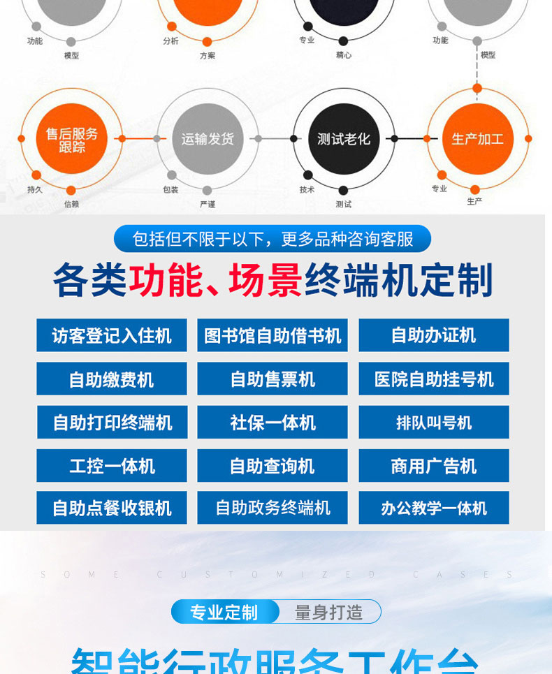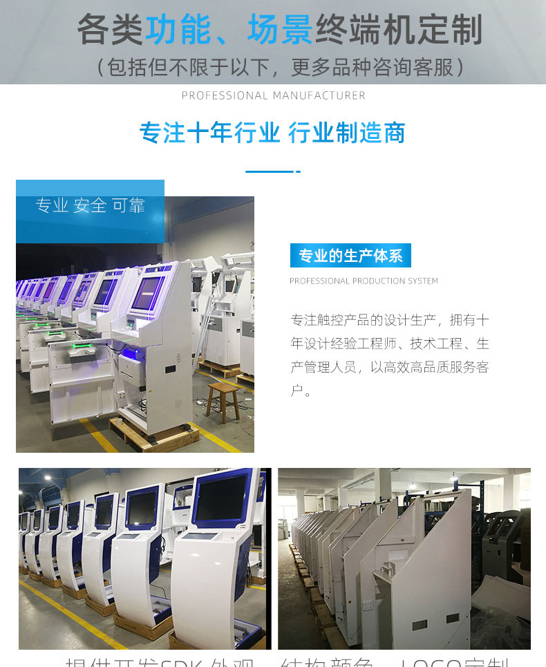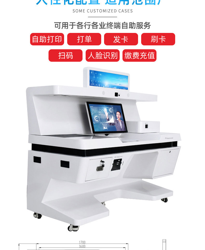 自助終端機定制:定制各種場景各種款式非標終端機;例如訪客機、景區(qū)自助取票機、醫(yī)院繳費查詢機、醫(yī)院自助取單機、社保查詢機、室內外廣告機、排隊叫號機、工控一體機、電力繳費查詢機、圖書自助銷售機、便攜式計算機、酒店自助入住機、自助收銀機等終端。