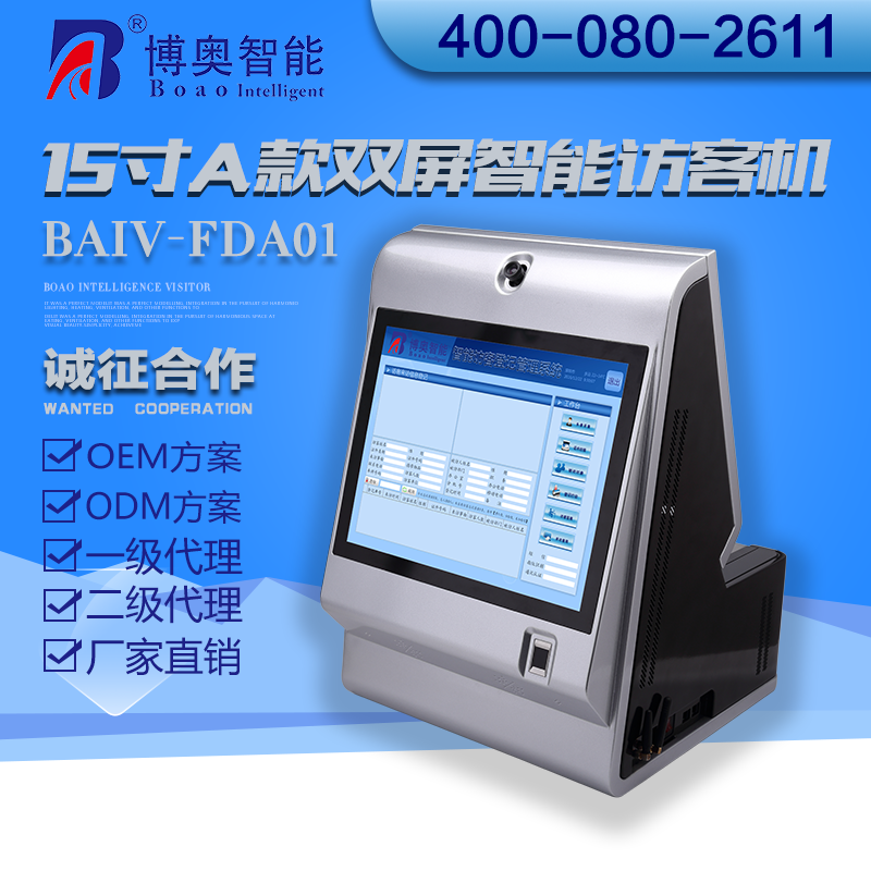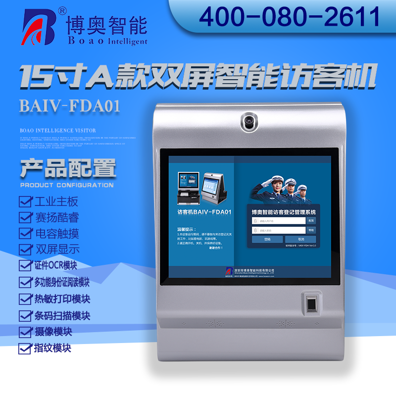 ? ? ??15寸A款雙屏智能訪客機(jī)控制核芯是博奧智能自主研發(fā)的工控主板,達(dá)到工業(yè)級(jí)要求。