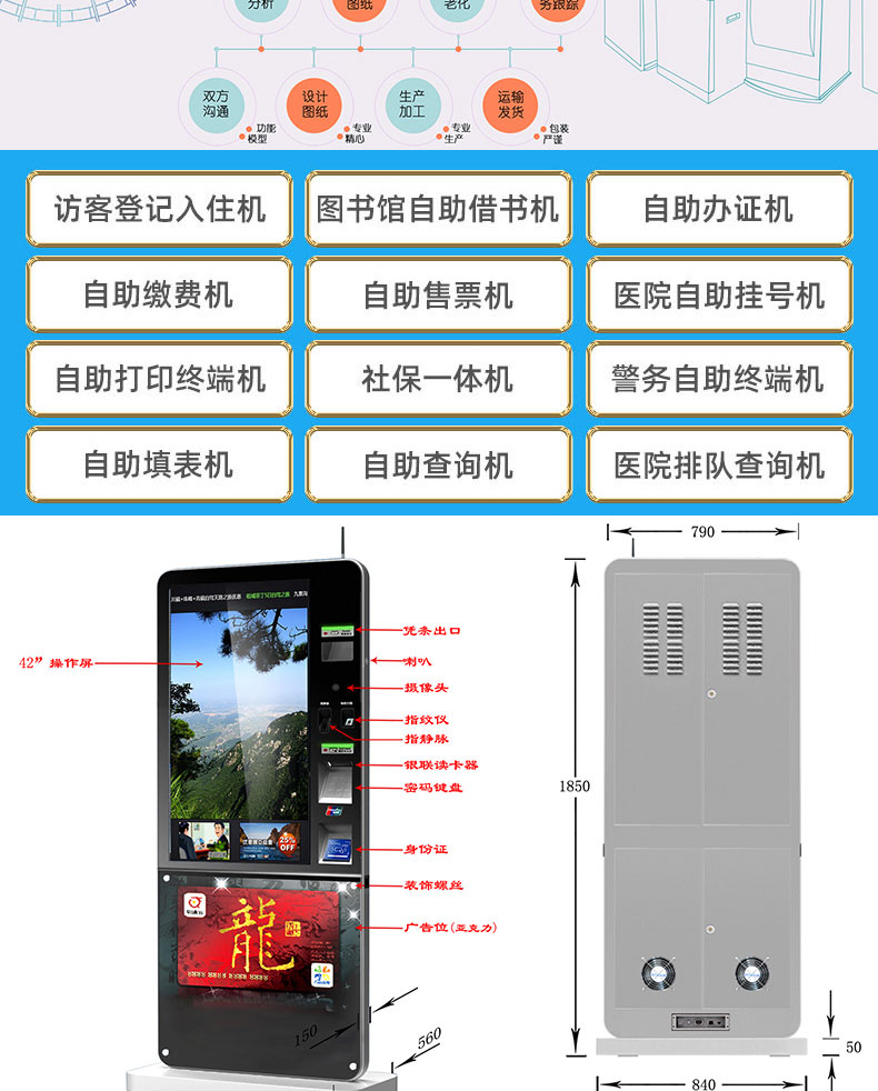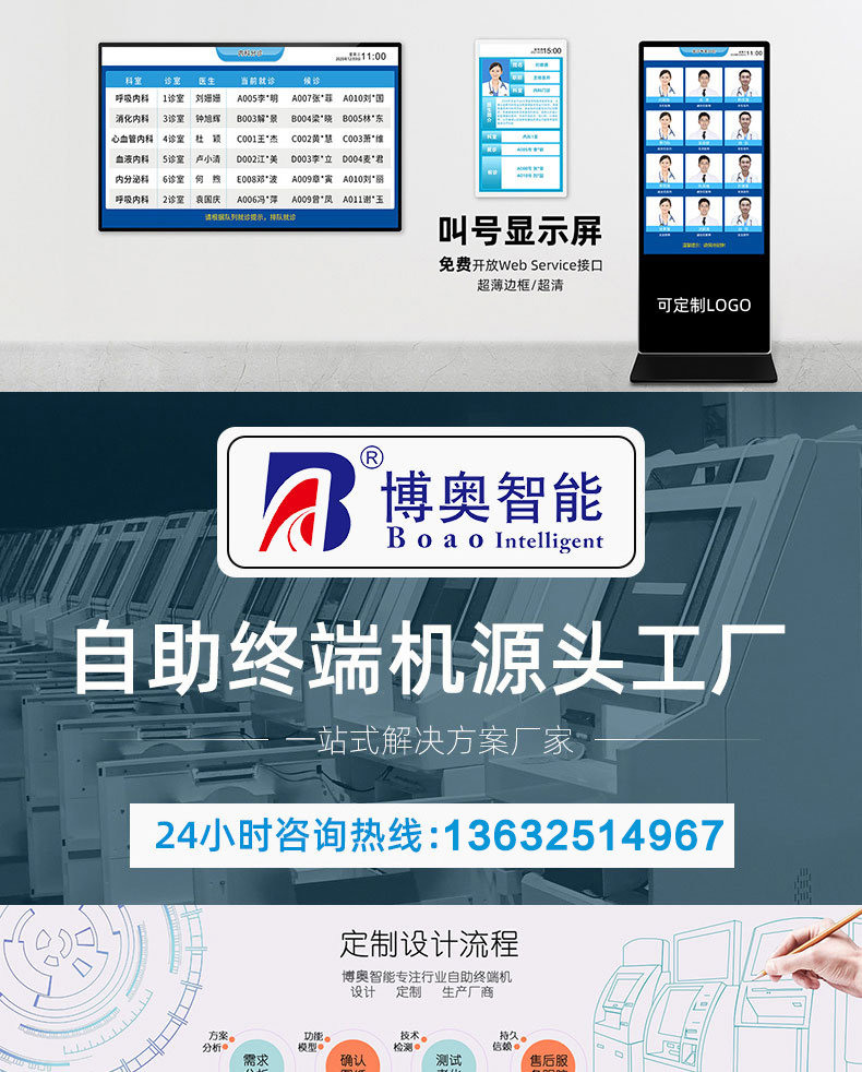 自助終端機(jī)定制:定制各種場(chǎng)景各種款式非標(biāo)終端機(jī);例如訪客機(jī)、景區(qū)自助取票機(jī)、醫(yī)院繳費(fèi)查詢機(jī)、醫(yī)院自助取單機(jī)、社保查詢機(jī)、室內(nèi)外廣告機(jī)、排隊(duì)叫號(hào)機(jī)、工控一體機(jī)、電力繳費(fèi)查詢機(jī)、圖書自助銷售機(jī)、便攜式計(jì)算機(jī)、酒店自助入住機(jī)、自助收銀機(jī)等終端。