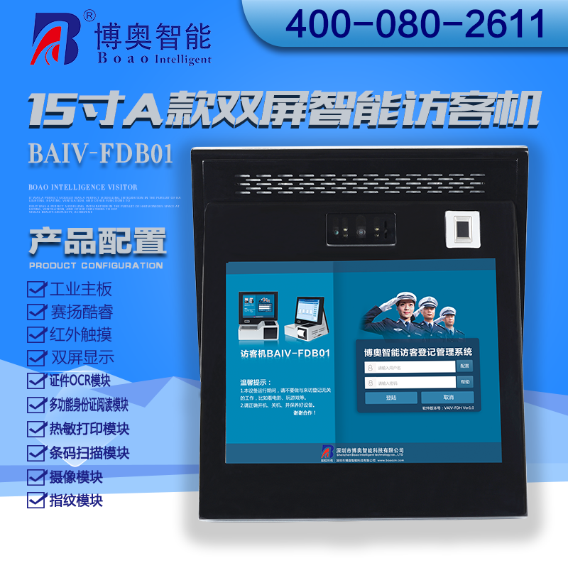 ? ? ? ?15寸B款雙屏智能訪客機主要用在政府機關(guān)、關(guān)口、機場、軍隊、公安、法院、學(xué)校、事業(yè)單位、花園小區(qū)、高檔寫字樓、工廠等門衛(wèi)傳達室用來訪客登記管理。