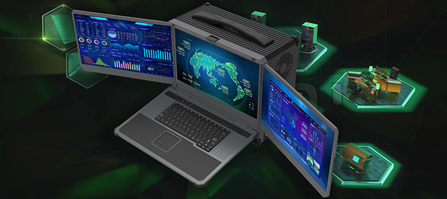 便攜式三屏計(jì)算機(jī)采用鋁鎂合金全金屬機(jī)身,加固性強(qiáng),外觀精美,體積輕巧,方便攜帶,達(dá)到工業(yè)級性能;本產(chǎn)品集成了豐富的I/O擴(kuò)展接口, 良好的散熱系統(tǒng), 配備高性能17.3"高清液晶屏,三屏顯示功能及高端顯卡處屏切換功能和核心模塊處理等功能, 該產(chǎn)品具有強(qiáng)大的擴(kuò)展功能, 還能不同需求提供定制服務(wù)??煞奖慵傻谌浖陀布?。是軍隊(duì)、公共安全、現(xiàn)場服務(wù)和其他特殊應(yīng)用領(lǐng)域的最佳解決方案!