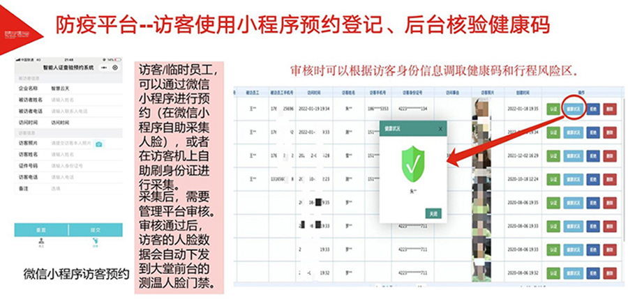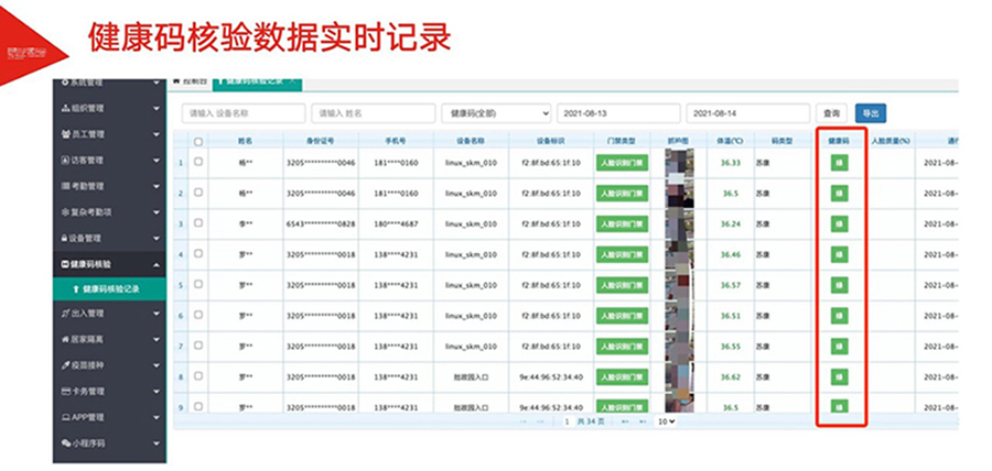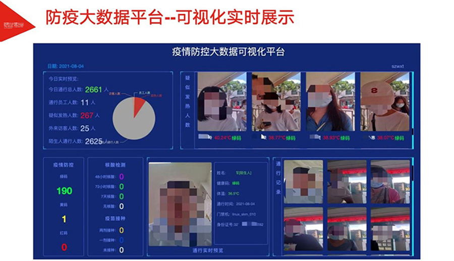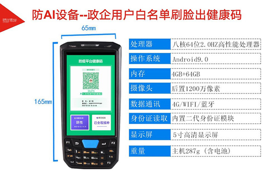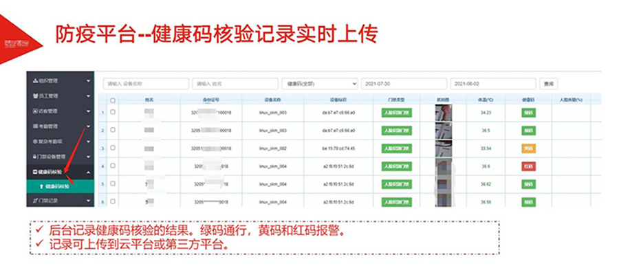 為加速各地落實(shí)健康碼助力疫情防控、一碼通行、科學(xué)防疫,健康碼測溫人臉識別一體機(jī),基于人臉識別算法和紅外熱成像測溫算法,可與國康碼、及各地健康碼平臺相對接,實(shí)現(xiàn)證、碼、臉 三合一,保證人臉精準(zhǔn)測溫,實(shí)時篩查通行人員健康情況,讓公共安全疫情防控更到位。該產(chǎn)品廣泛適用于辦 公、酒店、寫字樓、校園、商場、社區(qū)等公共服務(wù)場所,助力疫情防控,實(shí)現(xiàn)科技防疫。