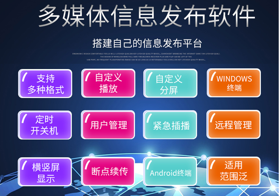 多媒體信息綜合系統(tǒng)是一種全新的媒體概念,指的是在醫(yī)院、銀行、大型商場 、超市、酒店、飯店、影院、街道、廣場、地鐵、火車、公交車站、醫(yī)院及其他公共 場所,通過終端顯示/互動(dòng)設(shè)備,發(fā)布商業(yè)、財(cái)經(jīng)和娛樂信息的多媒體專業(yè)視聽系統(tǒng)。其旨在特定的物理場所、特定的時(shí)間段對特定的人群進(jìn)行廣告信息播放的特性,融合了多媒體視頻信息的多樣性和生動(dòng)性,實(shí)現(xiàn)了信息發(fā)布的遠(yuǎn)程集中管理和內(nèi)容隨時(shí)更新,使受眾在第一時(shí)間接收到最新鮮的各類資訊。它將成為信息化建設(shè)的重要載體,不僅能夠提供及時(shí)、全面、優(yōu)質(zhì)、高效的信息服務(wù)以及全新的文化氛圍,還能夠極大地提升環(huán)境的整體形象,也是現(xiàn)代建筑的必然趨勢。