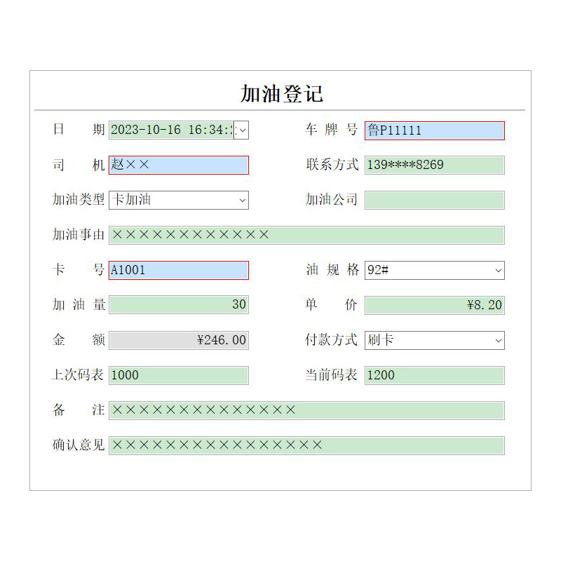 3、加油管理(加油登記、主卡充值、分卡充值、總卡余額、分卡余額);