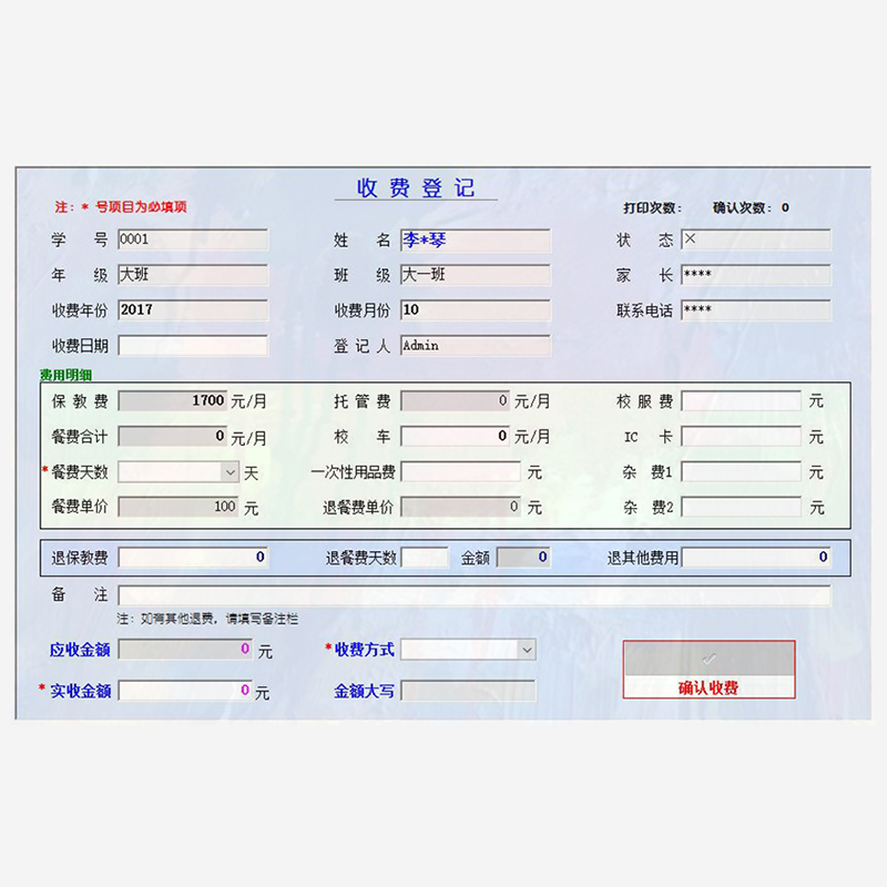 收費(fèi)登記:便捷地記錄幼兒的收費(fèi)情況,支持多種收費(fèi)方式的錄入。