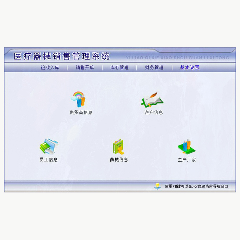 1. 基本設(shè)置:包括供貨商信息、客戶信息、員工信息、藥械信息、生產(chǎn)廠家等基本信息的錄入與管理。