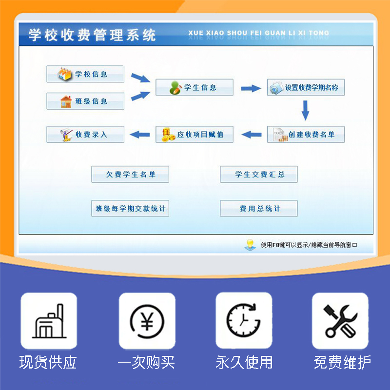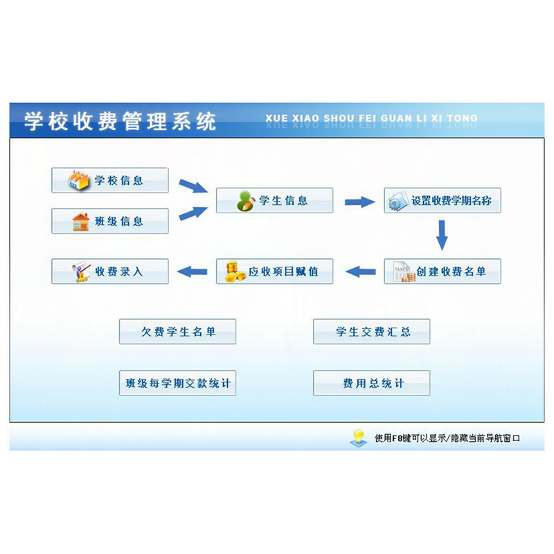 協(xié)助學校收取學生學費、書費、資料費、保險費、雜費和校車費進行全面管理的系統(tǒng)。