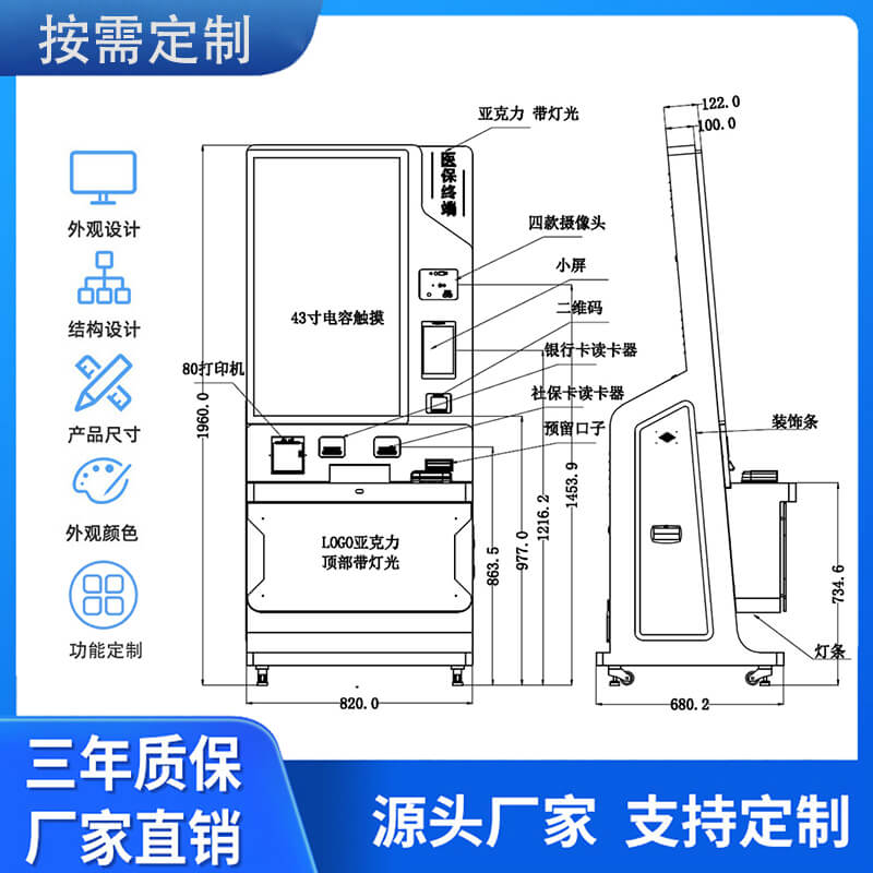 43 寸醫(yī)保自助終端機設備組件、功能簡介及工業(yè)產品外觀結構功能定制服務