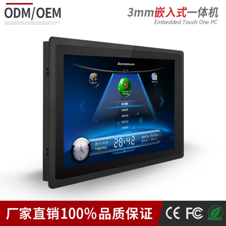 嵌入式工業(yè)平板電腦外殼采用鋁合金材料,鑄模沖壓,陽(yáng)極氧化,拉絲工藝制作而成,致使面框厚度達(dá)到3mm,面板無(wú)縫隙純平顯示設(shè)計(jì)達(dá)到IP65要求;內(nèi)部集成X8架構(gòu)Intel Baytrail平臺(tái)工控主板(自主開(kāi)發(fā))、固態(tài)硬盤(pán)內(nèi)存、工業(yè)高清液晶屏及十點(diǎn)電容觸摸屏等主要部件,它具有精美輕巧,防塵防水,堅(jiān)固耐用、安全穩(wěn)定,操作方便等特點(diǎn)。